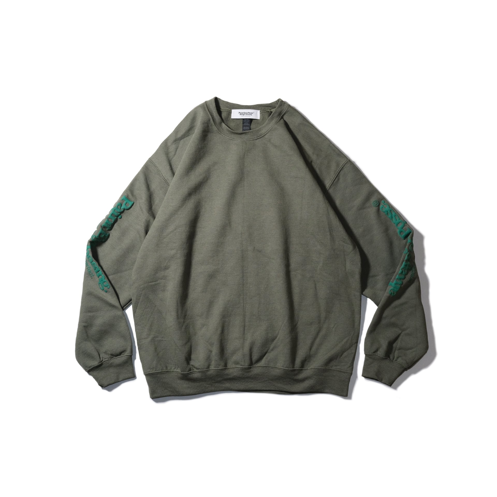 ボディと同系色でプリントした袖のロゴは凸凹した質感と経年変化を楽しめる仕様になっています。