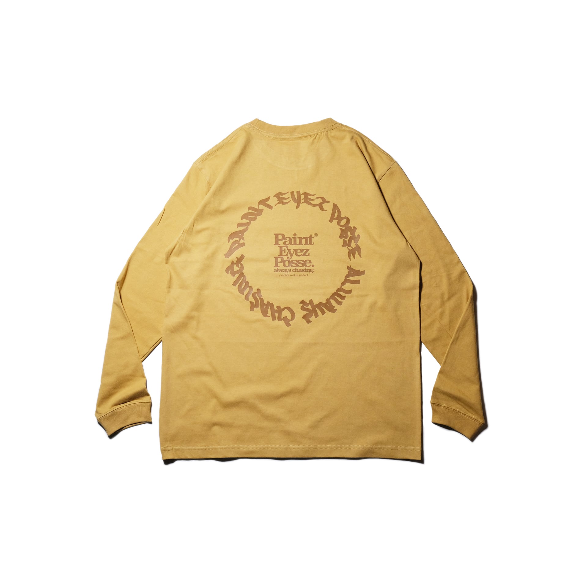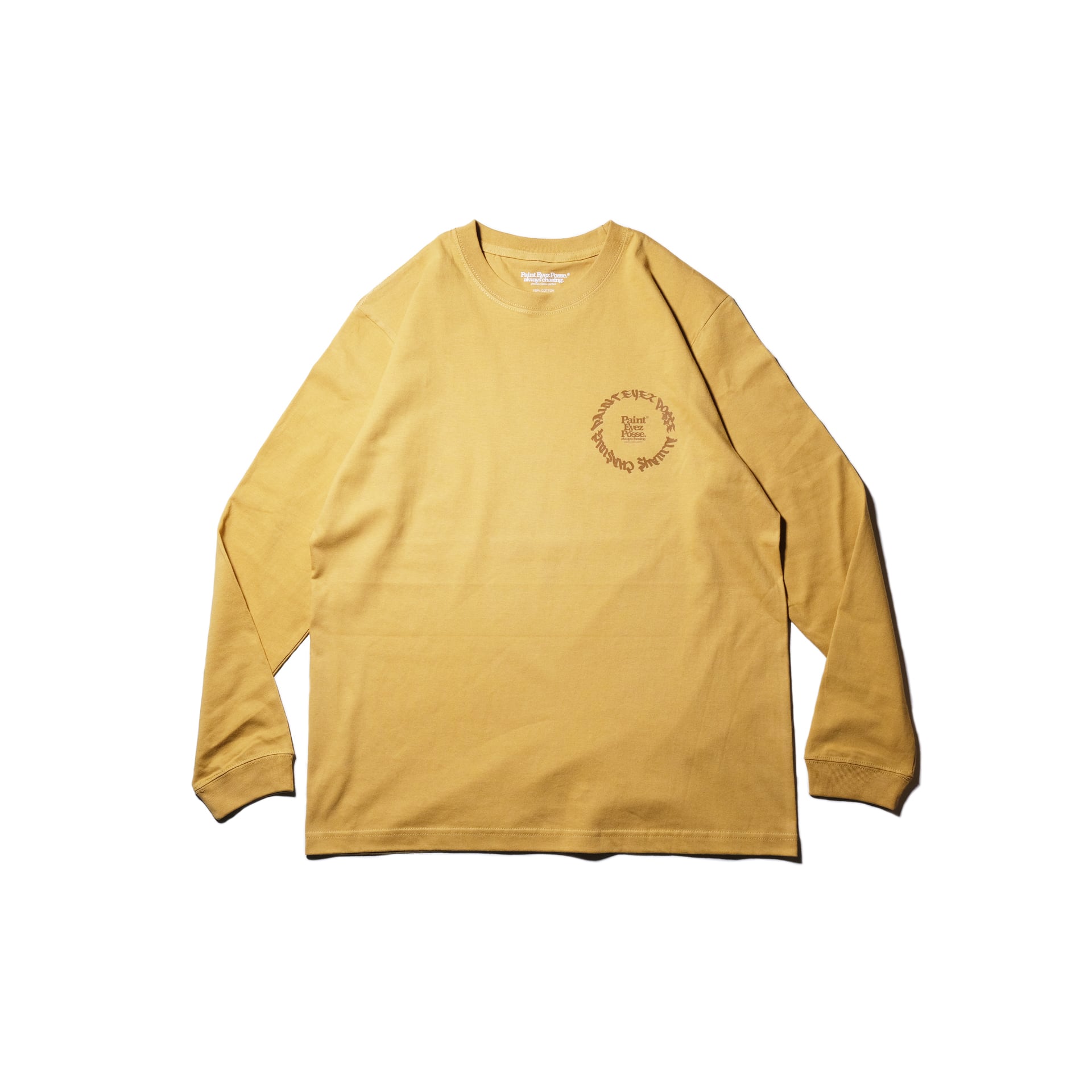 マスタードカラーのボディに、チョコレートカラーでプリントを施した着心地の良いロングスリーブ。オーバーサイジング気味に着る事を意識した、大きめのバックプリントが印象的な1枚。