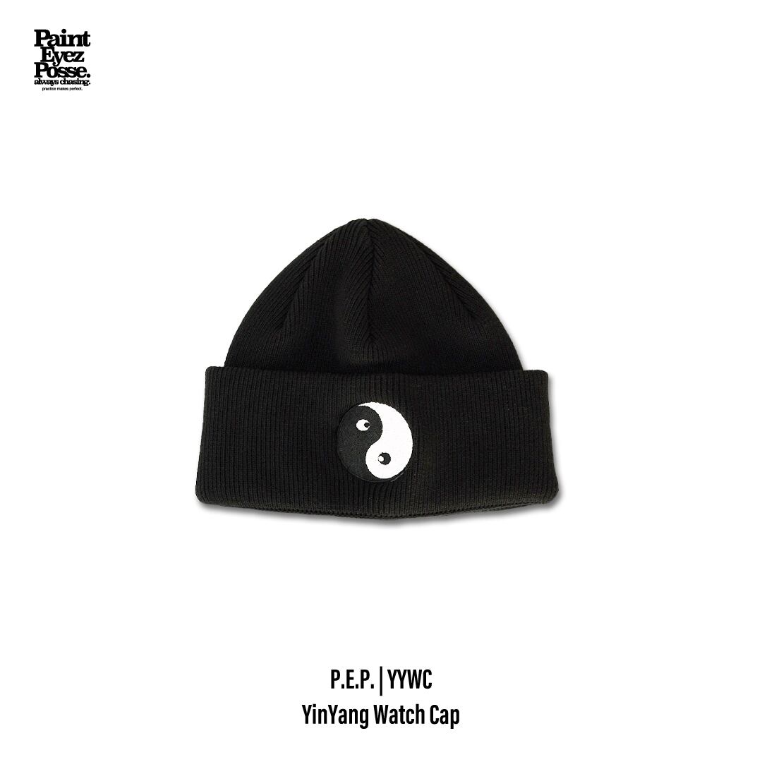 ペイントアイのインヤンロゴを刺繍で配置した、折り返しカフビーニー。